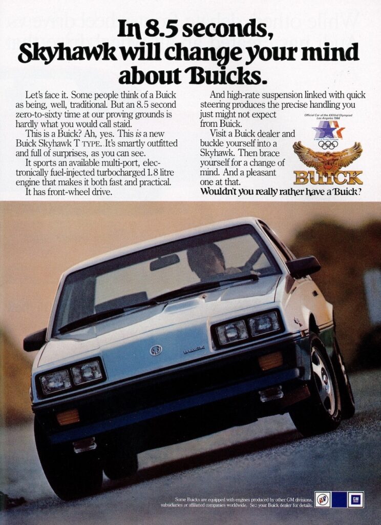 During the 1980s I was working in the creative department at McCann-Erickson on the Buick account. Although the import market had been promoting smaller vehicles for a least a decade, American manufacturers were hesitant to enter the compact car market. Buick, especially, was known for its rather large vehicles; in the classic film Annie Hall, Woody Allen’s character Alvie proclaims, “there’s a spider in your bathroom the size of a Buick.” Thus when the 1984 Skyhawk was introduced, the smallest vehicle in the Buick lineup, I thought a unique strategy would be to cite it as the perfect vehicle for short people. As someone who is barely 5’ 2”, I was tired of sitting on cushions to see over the steering wheel or propping pillows behind my back to reach the clutch in behemoth American cars. However, my idea was quickly shot down; perhaps the popular Randy Newman 1977 hit with the lyrics “short people got no reason to live” influenced the creative director’s decision. Or more likely it was because promoting a sporty vehicle as appropriate for individuals of shorter stature, primarily women, was considered a marketing nightmare. At any rate, Buick, like the majority of US car makers, continued to sell the mantra “bigger is better,” which no doubt contributed to their eventual decline.